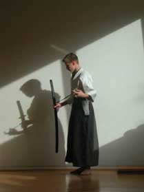 einen alten Iaido-Meister, der auf die Frage "warum übst du (noch)?"