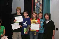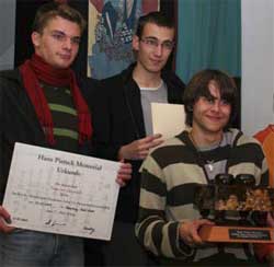 die Jungs von der Gelehrtenschule des Johanneums (HH) gewannen, während der Preis für das bestdekorierte Boot ebenfalls nach Berlin ging. Der absolute Höhepunkt war aber das Klavierkonzert, in dessen Verlauf Victor Lin, Dimitri Popov und Anna Kobayashi Werke von Liszt, Mendelssohn und Beethoven erklingen ließen, um zum Abschluss noch vierstimmige Improvisationskunst zu Gehör zu bringen. Go kam aber auch nicht zu kurz: der jüngste Teilnehmer entstammt der Klasse 2; die homogenste Mannschaft bestand aus drei chinesischen Geschwistern der Brechtschule (HH), die drei Profis aus Korea und Japan hatten alle Hände voll zu tun mit Spielkommentaren, der Hebsacker-Verlag sponsorte schöne Postkarten und drei Paar Dosen, in die ein Mitbringsel von Frau Kobayashi, nämlich drei Satz Muschelsteine gelegt wurden. Gern nahm man auch die Bücher vom Carlssen-Verlag entgegen, die Kugelschreiber des Nihon Kiin kommen dann nächsten September zur Verteilung, wenn es für alle Schulmannschaften wieder heißt: Schlafsack packen, denn wir fahren zum HPM – aller Voraussicht nach – gen Berlin!