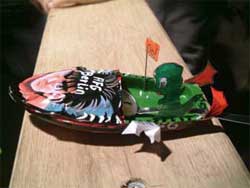 Als Samstag abend Event sollte immer etwas veranstaltet werden, was anders ist als Go- diesmal war es fast perfekt, nicht drin, sondern draussen, nicht leise, sondern laut, nicht denken, sondern basteln. Deltef Nehmer und Team hatten unter langen Vorbereitungen am Schulteich einen Wettbewerb mit Vorausscheidungsrunden aus dem Boden gestampft, der bundesweit seines gleichen sucht, aber nicht finden wird. Boote aus Hamburg und Berlin waren die tapferen Sieger des ersten bundesdeutschen Knatterbootwettbewerbes - einen Herzlichen Glückwunsch!
