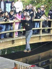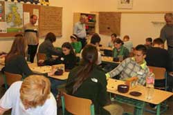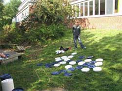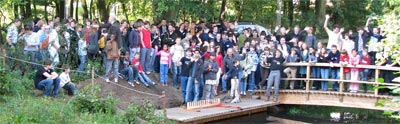 Die Vorarbeit begann am Laptop auf der Rückfahrt von OberurselSeptember 2006; das finish bildet die Berichterstattung - zum Beispiel diese hier. Dazwischen liegen 361 Gespräche, 169 Emails, 81 Telefonate und 25 Organisationstreffen. Weitere Zahlen gefällig? Bitte schön: 36 Mannschaften mit total 144 Spieler/innen und Betreuer/innen aus allen Teilen der Republik, 12 (Ende der Quadratzahlen, falls jemand das bemerkt hat) Kocheltern, assistiert von diversen Helfern gaben sich größte Mühe, niemanden hungrig ans Brett zu schicken. Verschiedenen Gerüchten zufolge soll das auch ganz gut gelungen sein. 5 der 7 Ehrengäste hielten kurze Ansprachen, ehe Frau Pietsch am Ende einer gelungenen Begrüßungszeremonie das Turnier eröffnete. In den Spielpausen gab es Tischtennis, Badminton, Frisbee-Go, Jojo, Jongliertätigkeit, Kalligrafie mit Pei, Balancierakte auf dem Drahtseil, einen destruktiven Badeversuch im Teich – und mit Kerzenschein und Flutlicht dann das: Thomas und Detlef organisierten das erste internationale Knatterbootrennen für Schul-Go-Mannschaften, das