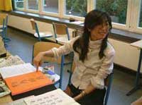 Gewohnt ästhetisch gab uns Pei wieder einen Einblick in die geheimnisvoille Welt der chinesischen Zeichen und der Art und Weise, diese mit Pinsel und Tusche auf Papier zu bannen. Zahlreiche Schüler besuchten sie zwischen den Runden und übten sich Gestaltung in Konzentration und einer ruhigen Hand. Die Präsenz von japanischen, koreanischen und chinesischen Elementen ist uns wichtig- wird doch das Go wie wir alle wissen, in ganz Ostasien gespielt. Danke für ästhetische, asiatische Schriftkunst!