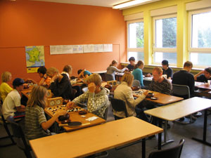 Es war quasi die letzte Steindose gerade auf den Spieltisch gestellt worden, als schon die ersten Mannschaften eintrudelten. Diese fielen auch gleich ausgehungert über das Abendessen her, während in der oberen Etage die Mitgliederversammlung des go4school tagte.