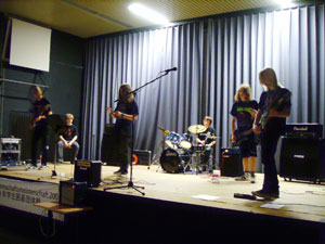 Um 20.30 Uhr spielte dann die Metal-Band „Sawdust“ als Abschluss des Tages, welche leider nicht die Anlage der Schule nutzen durfte, da der zuständige Lehrer auf Klassenfahrt war und im Zuge der Raumbeschallung somit improvisieren mussten.